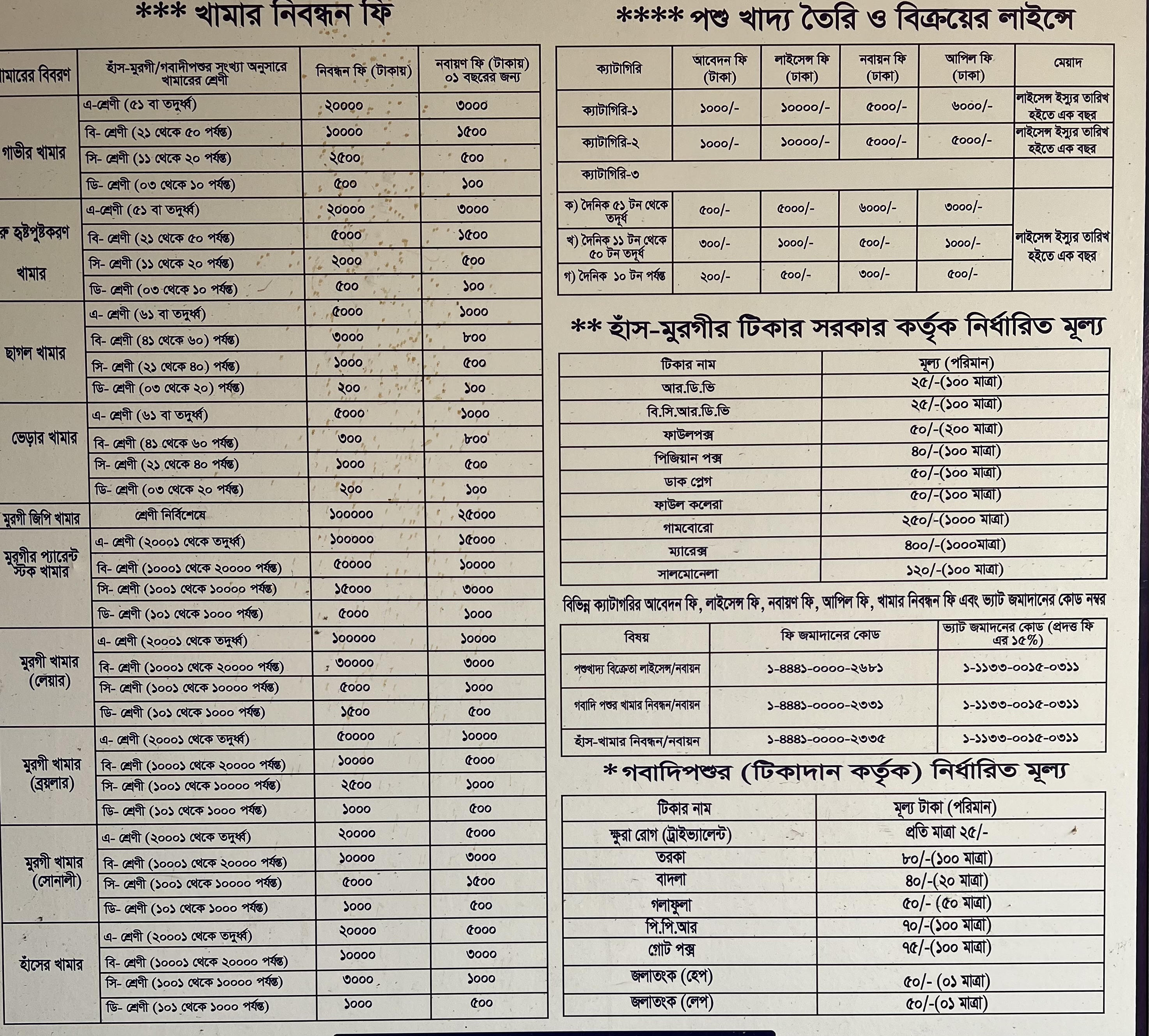 সেবার তালিকা ও সেবা মূল্য: